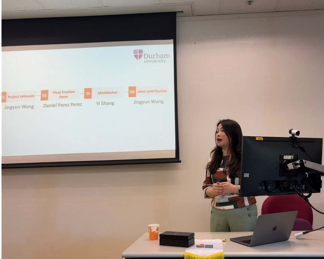During her talk, Dr Wang introduced two AI-driven mathematics games developed by her research team: Pizza Fraction Fever, a web-based serious game designed as an experimental testbed for adaptive learning strategies, and the Supermarket Game, which incorporates personalised support mechanisms to facilitate collaboration among guardians, children, and AI during mathematics activities. Additionally, two PhD students, Daniel Alberto Perez Perez and Shang Yi, presented pilot studies based on these two games. They shared preliminary findings that highlight the potential of AI-supported games not only to personalise student learning experiences but also to foster meaningful learning collaborations between children and their guardians.
