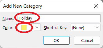 - Open the Color Categories dialog by tab Appointment/Meeting-> Categorize-> All Categories…