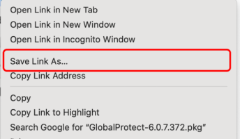Download the GlobalProtect Agent from GlobalProtect-6.0.7.372.pkg by right-clicking on the link and select Save Link As.