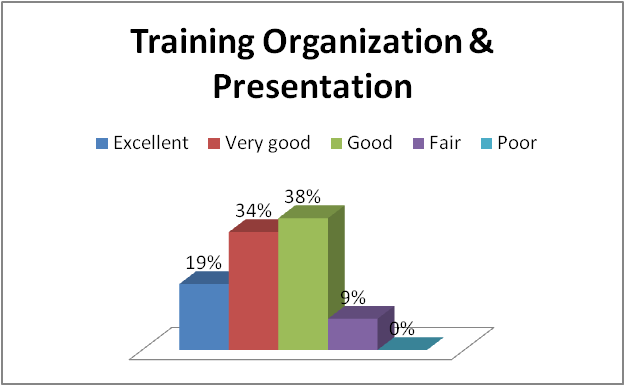 Q5. How well is the content of the training organized? Findings: About 91% of the attendees rated the training organization and presentation to good or above.
