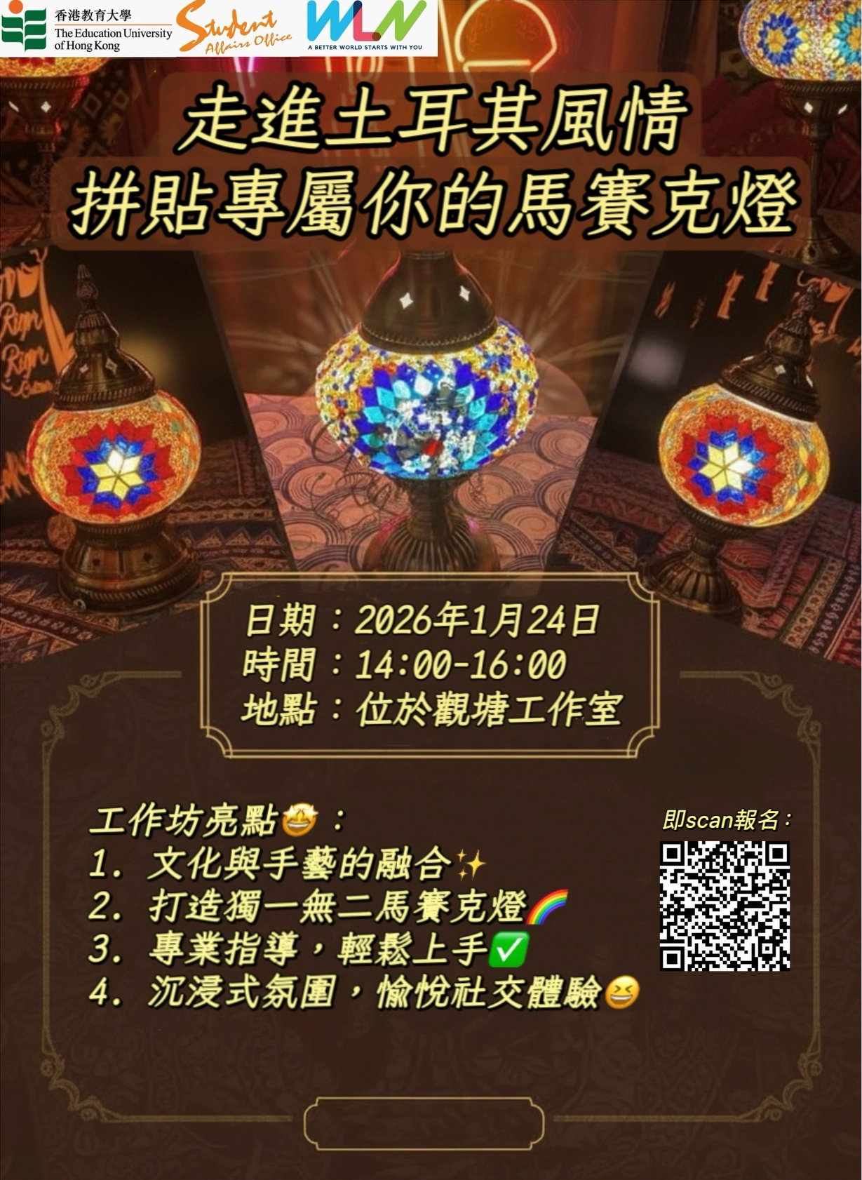 【一月活動推介】和富領袖網絡 -「走進土耳其風情:拼貼專屬你的馬賽克燈────沉浸式土耳其馬賽克燈工作坊 」