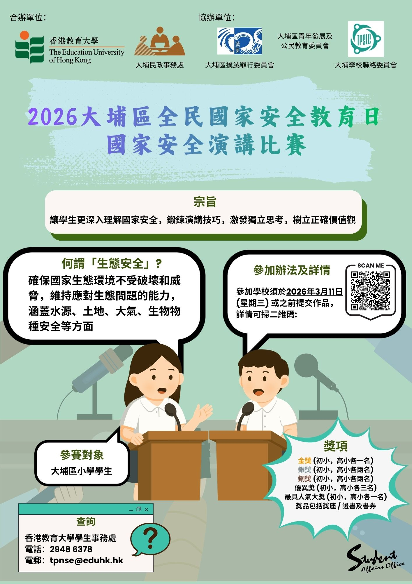 香港教育大學 學生事務處(電話:2948 6378 何小姐;電郵:tpnse@eduhk.hk)
