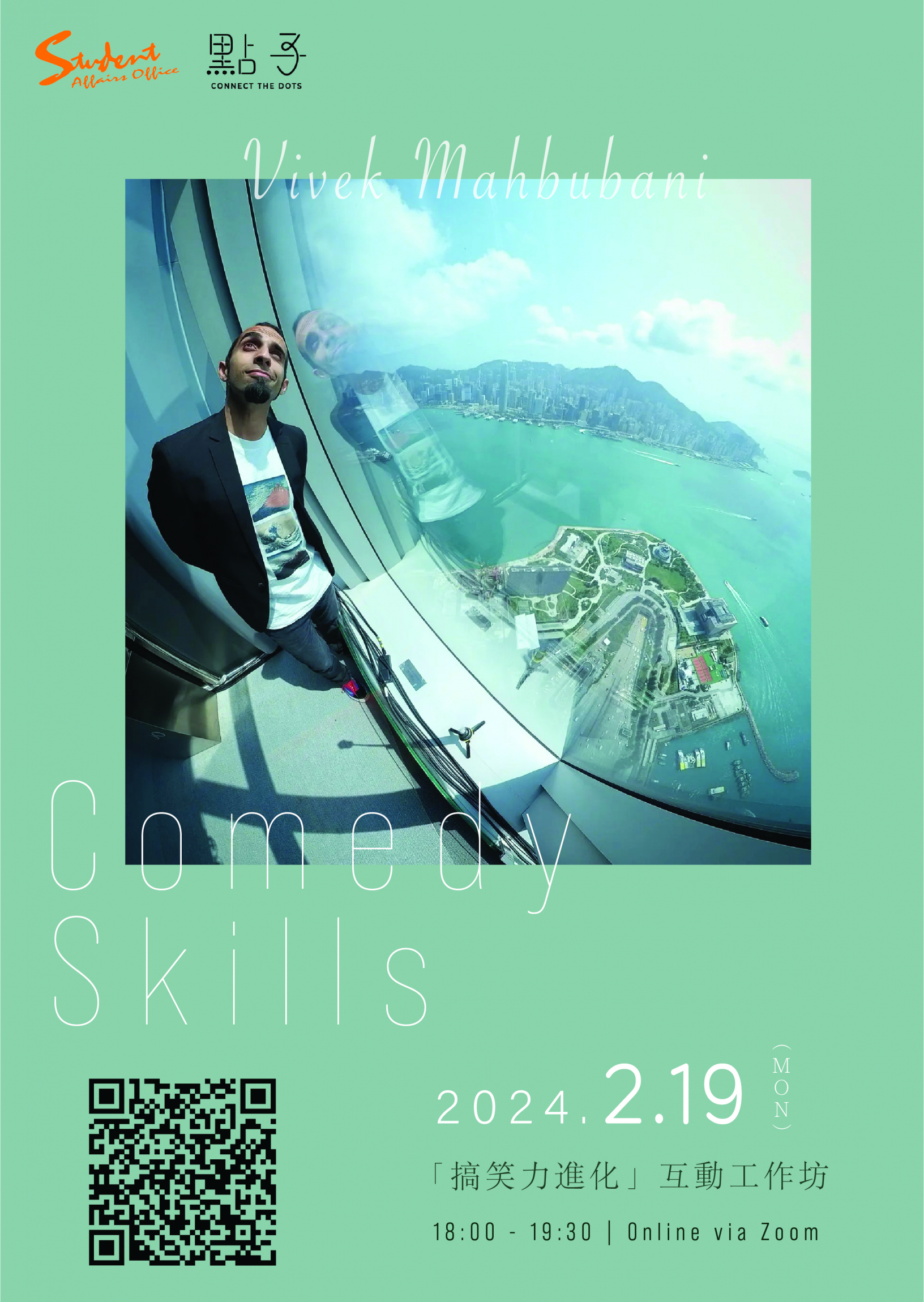本地棟篤笑藝人Vivek將會傳授他的搞笑秘技,教你如何以有趣的角度觀察日常,更會以一系列的互動遊戲,即場訓練你的搞笑反應力,練習如何在生活中實踐幽默,助你與人拉近距離,化解尷尬。