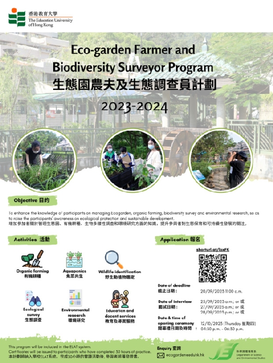 Should you have any enquiries, please contact us by email ecogarden@eduhk.hk.