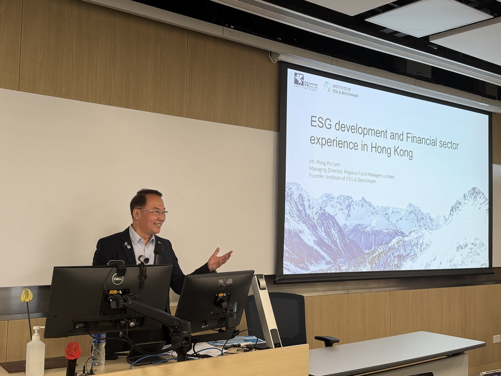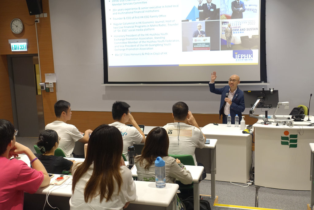Mr Paul Pong, Founder and CEO of The Institute of ESG & Benchmark (IESGB), shared insights on the Environmental, Social and Governance (ESG) practices in Hong Kong, and discussed the historical development and future vision of the sustainable disclosure pathway. Moreover, Mr Paul Pong engaged students in career development in the ESG industry and explained the importance of achieving Certified ESG Professional (CESGP) for career advancement.