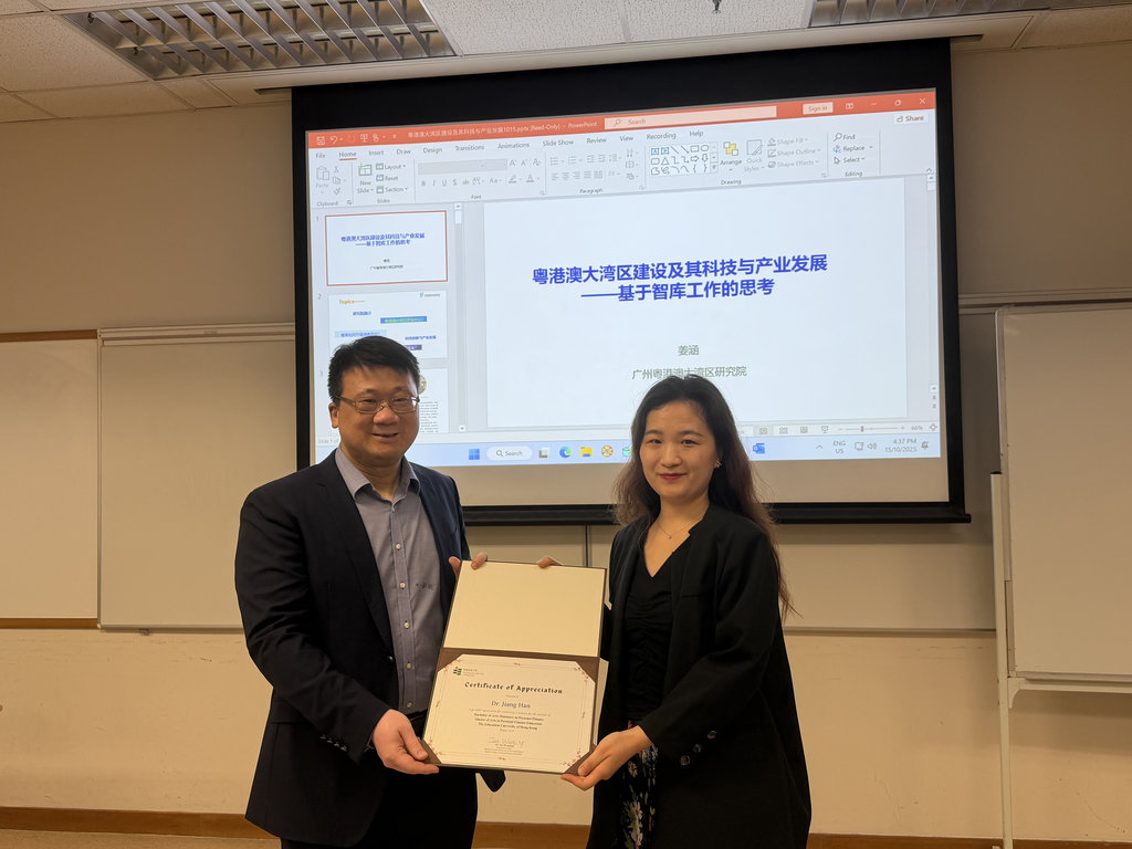 On October 15, 2025, the Programme invited Dr. Jiang Han, a researcher from the Guangzhou Institute of GBA, to conduct a financial research seminar. Dr. Jiang introduced the development progress of the GBA to students. Combined with Think Tank, she analysed the bottlenecks and challenges of the GBA in technological innovation and industrial development, and discussed the implementation pathways and effectiveness of science and technology policies in upgrading industries. Additionally, she shared methodologies and techniques for drafting policy analysis reports. During the seminar, students recognised the core research competency of Tink Tank, which means transforming complex policy issues into clear, implementable policy suggestions.