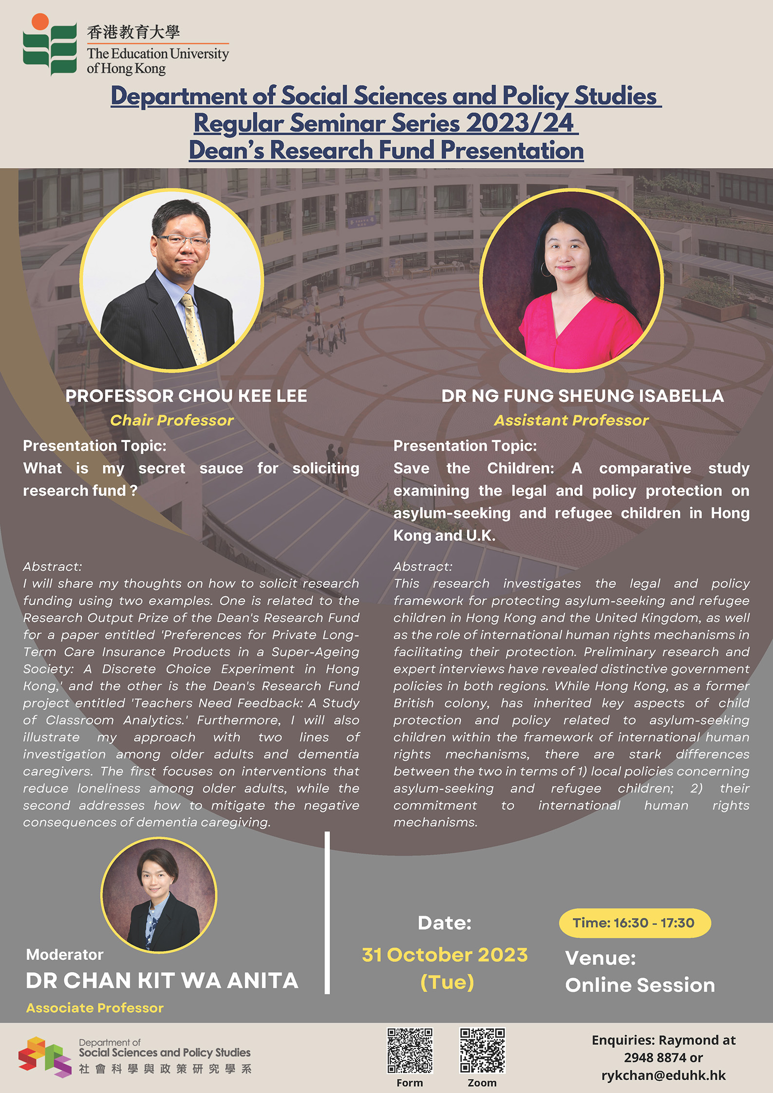 | Event: | Department of Social Sciences and Policy Studies Regular Seminar Series 2023-2024 - October Session |