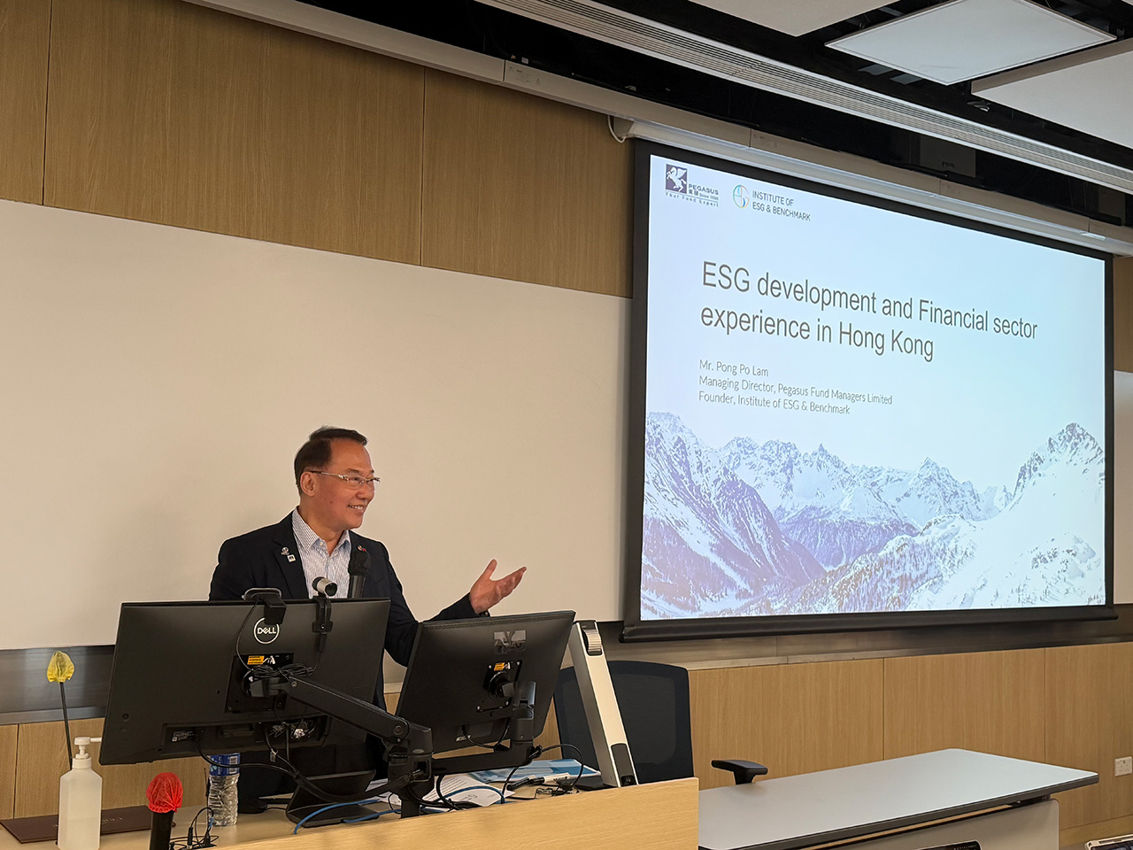香港教育大学个人理财课程邀请环境、社会及企业管治基準学会和亚洲金融科技师学会的创始人Paul Pong先生,向同学们分享香港的环境、社会及企业管治的见解和可持续资讯披露的发展历程和未来愿景。此外,Paul Pong先生与同学交流ESG领域中的职业发展,向学生讲解取得认可专业ESG策略师(CESGP)对个人职业发展的促进作用。