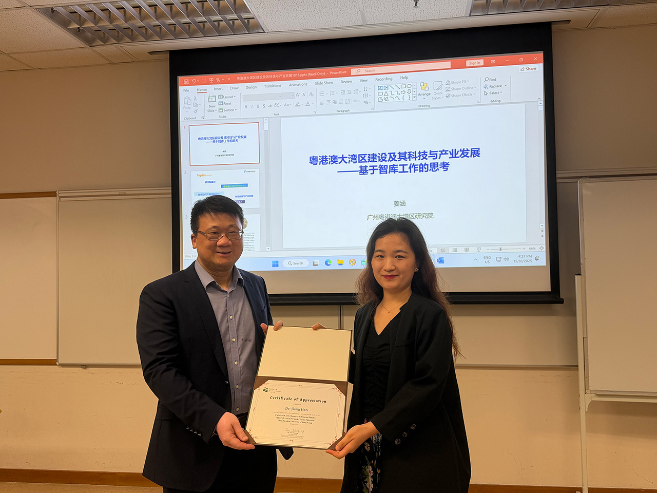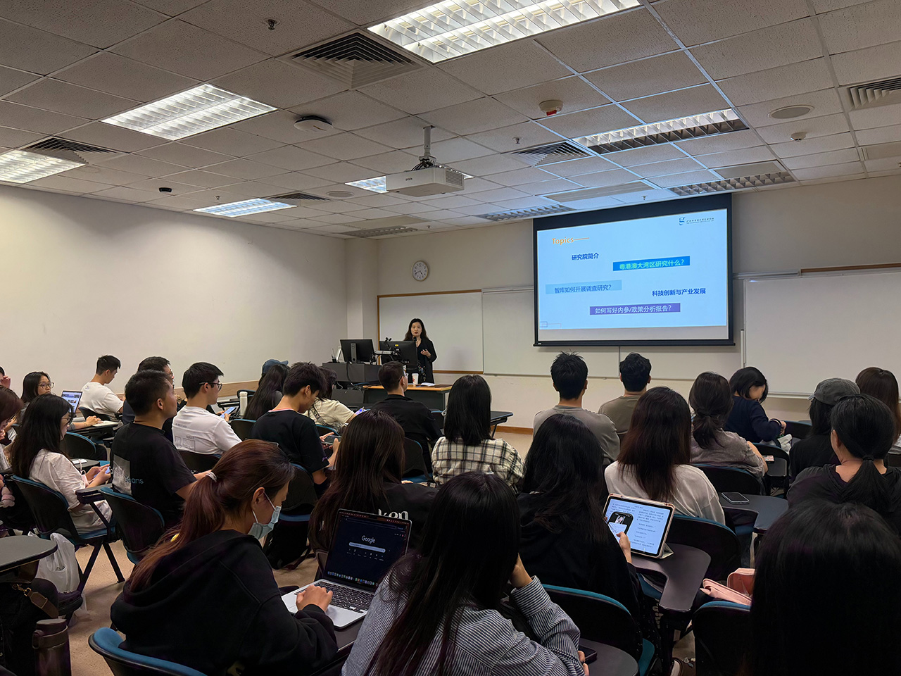2025年10月15日,个人理财荣誉文学士课程邀请广州粤港澳大湾区研究院的研究员姜涵博士开展金融研究研讨会,向同学们介绍粤港澳大湾区的建设进程,结合智库剖析大湾区在科技创新与产业发展遇到的瓶颈和挑战,探讨科技政策在推动产业升级中的实施路径与成效。除此之外,她还分享了政策分析报告的撰写方法和技巧。此次研讨会,让BA(PF) 的学生认识到智库工作的核心研究能力,即将複杂显示问题转化为清晰、可执行的政策建议。