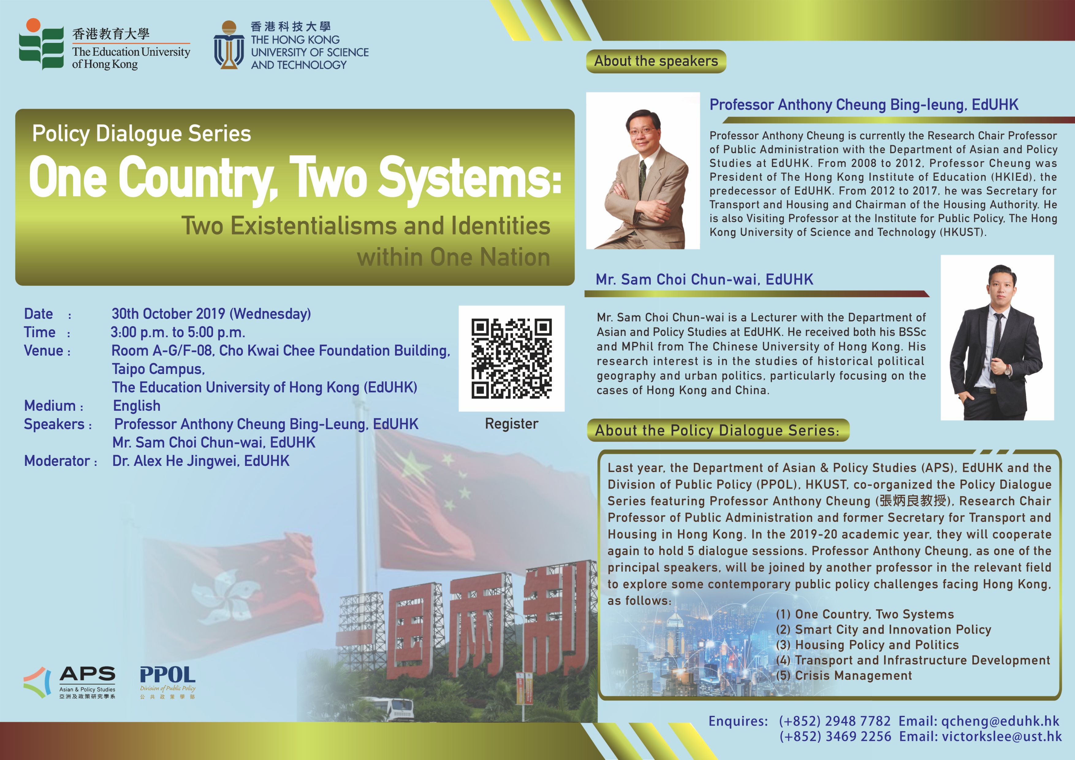 Last year, the Department of Asian and Policy Studies (APS), EdUHK and the Division of Public Policy (PPOL), HKUST, co-organised the Policy Dialogue Series featuring Professor Anthony Cheung(張炳良教授), Research Chair Professor of Public Administration and former Secretary for Transport and Housing in Hong Kong. In the 2019-20 acadeic year, they will cooperate again to hold 5 dialogue sessions. Professor Anthony Cheung, as one of the principal speakers. Will be joined by another professor in the relevant field to explore some contemporary public policy challenges facing Hong Kong, as follows: