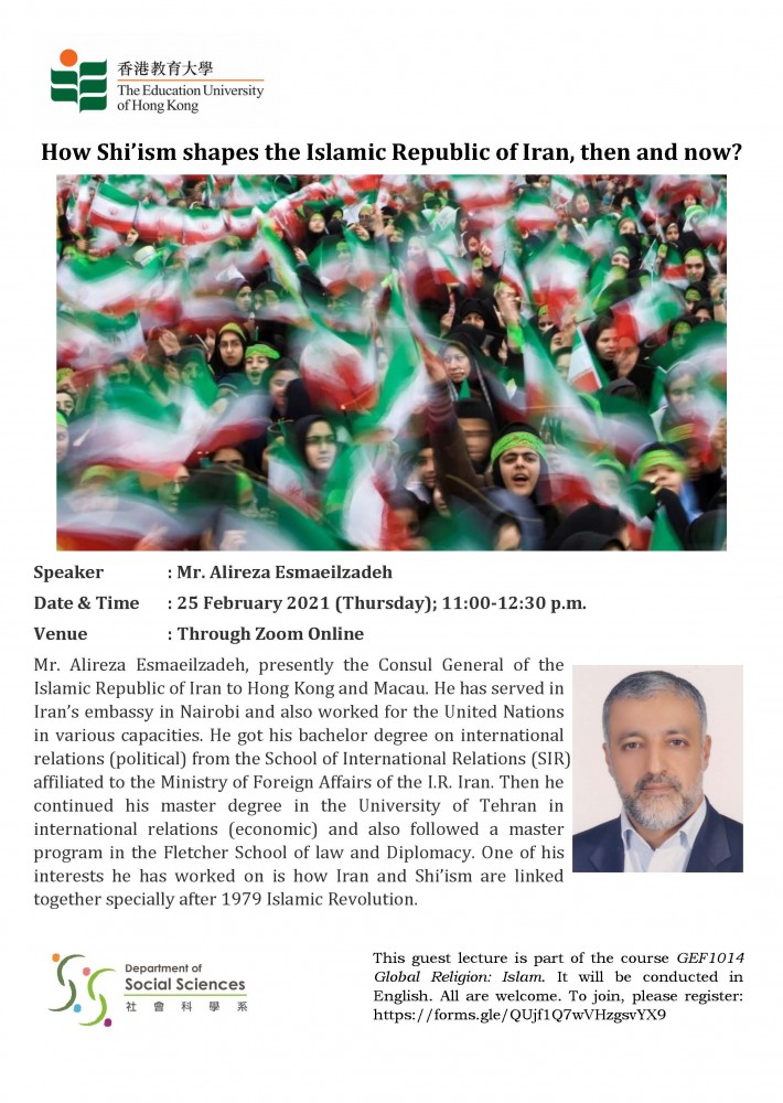 Mr. Alireza Esmaeilzadeh, presently the Consul General of the Islamic Republic of Iran to Hong Kong and Macau. He has served in Iran’s embassy in Nairobi and also worked for the United Nations in various capacities. He got his bachelor degree on international relations (political) from the School of International Relations (SIR) affiliated to the Ministry of Foreign Affairs of the I.R. Iran. Then he continued his master degree in the University of Tehran in international relations (economic) and also followed a master program in the Fletcher School of law and Diplomacy. One of his interests he has worked on is how Iran and Shi’ism are linked together specially after 1979 Islamic Revolution.