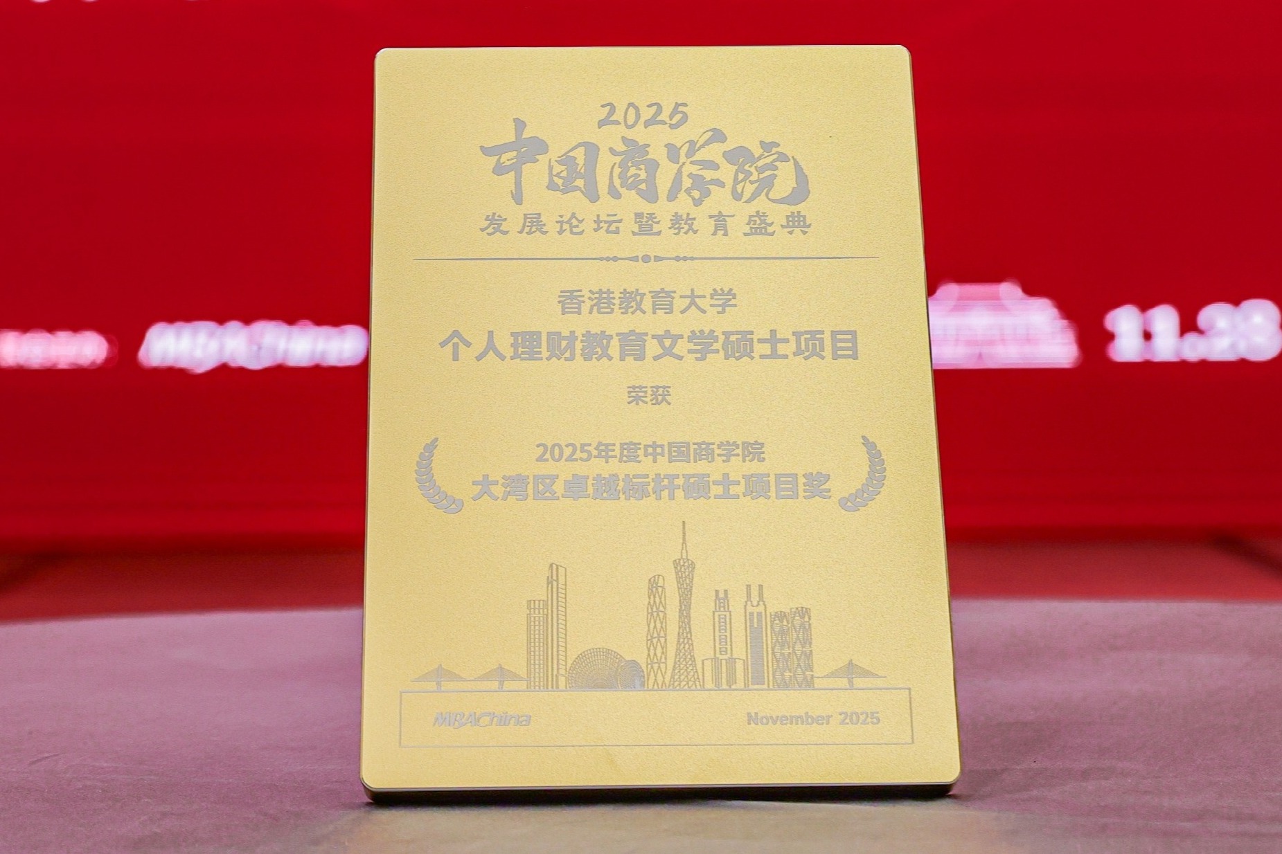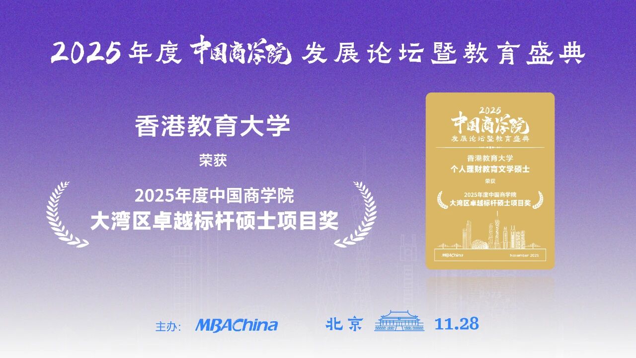 香港教育大学(教大)个人理财教育文学硕士课程(Master of Arts in Personal Finance Education, MA(PFE))荣膺「2025年度中国商学院大湾区卓越标杆硕士项目奖」,彰显课程在粤港澳大湾区人才培养及区域协同发展方面的卓越贡献,并获业界高度肯定。