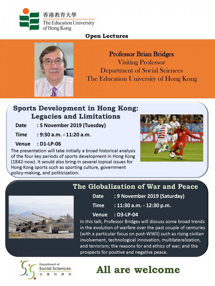 In this talk, Professor Bridges will discuss some broad trends in the evolution of warfare over the past couple of centuries (with a particular focus on post-WWII) such as rising civilian involvement, technological innovation, multilateralization, and terrorism; the reasons for and ethics of war; and the prospects for positive and negative peace.