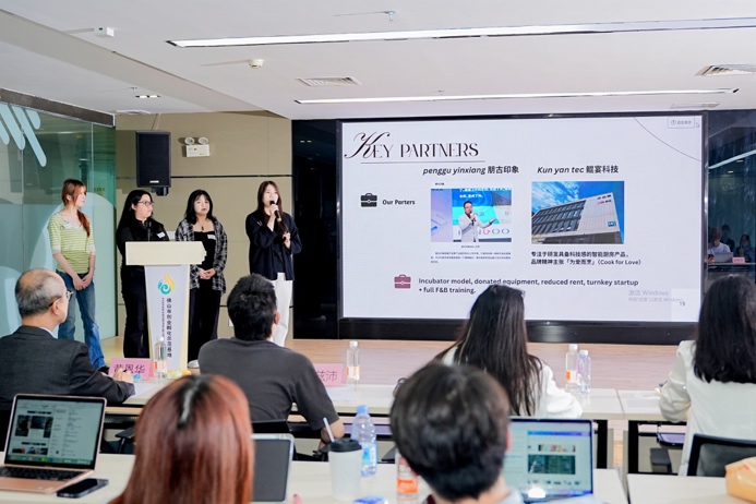 下午,社創青年進行創業項目路演,評委包括佛山創業孵化示範基地負責人唐茲沛、順德和美共創鄉村運營促進中心理事長梁晴香、大灣區職場導師(香港)黃恩華、懿品果匠創始人岳斐斐,對項目提出專業意見與建議。