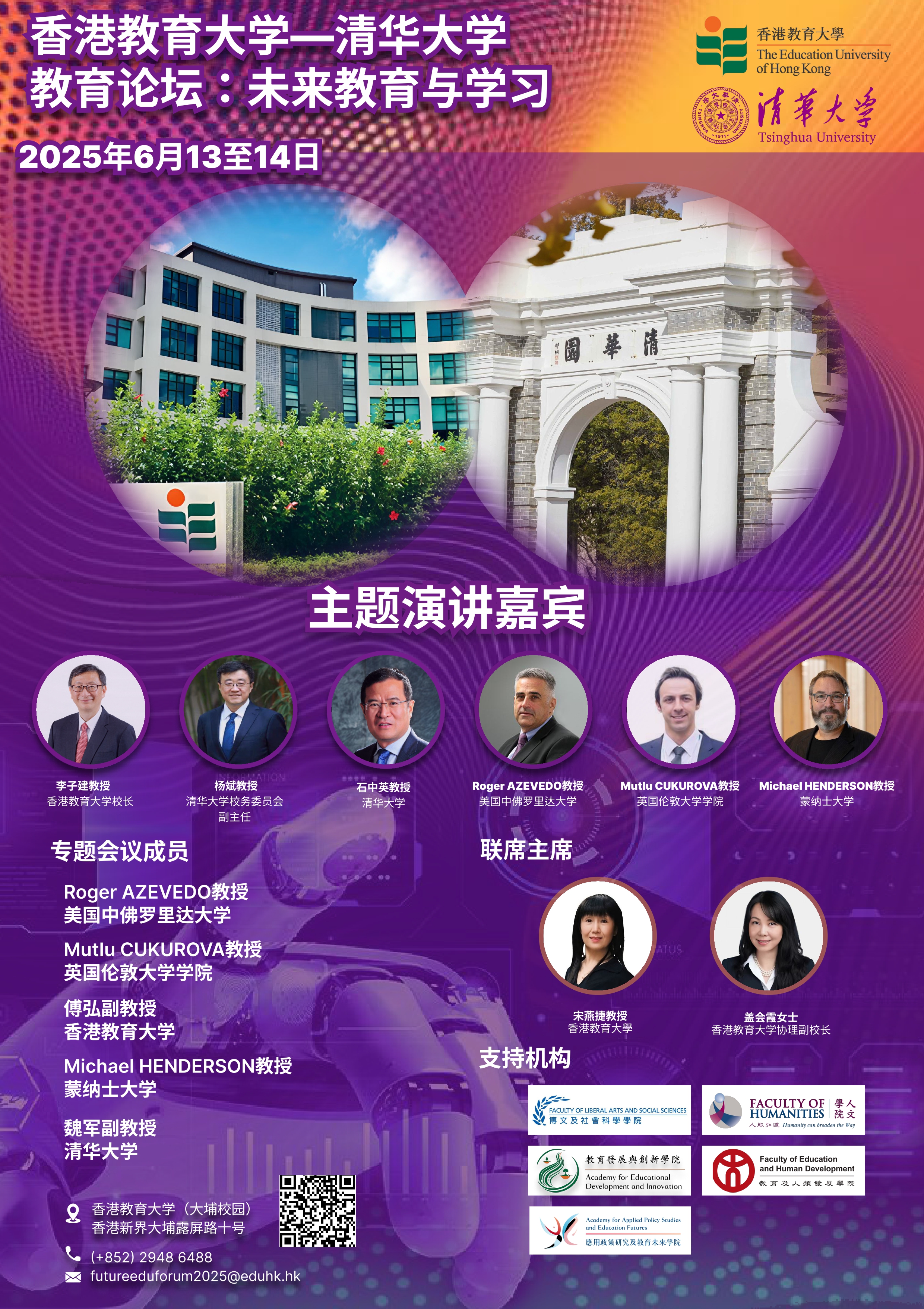 为深入探讨人工智能如何重塑传统教育范式,推动未来教育与学习的创新发展,香港教育大学与清华大学将于二零二五年六月十三日至十四日在香港教育大学大埔校园共同举办「未来教育与学习」论坛。是次论坛将汇聚来自不同国家的专家、学者和博士等共同探讨人工智能与教育深度融合的前沿议题,以此为教育工作者、研究人员及各持份者提供深刻的学术见解与实践启示。