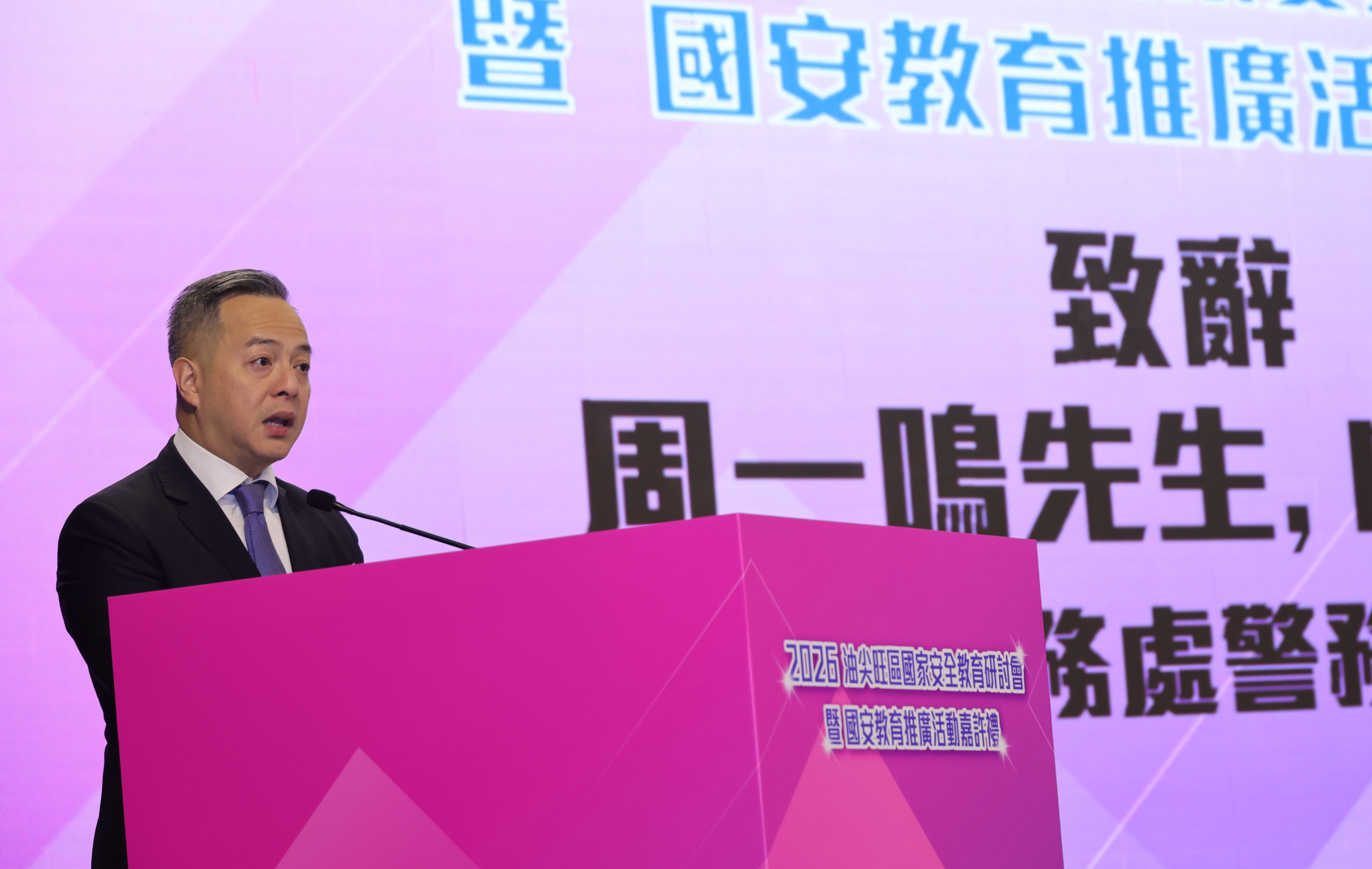 周一鸣处长致辞时谈及,「国家安全,人人有责」,现时全球的地缘政治局势复杂多变,香港虽然趋向平稳,但我们仍要居安思危,老师和家长要加强学生明辨是非的能力,视维护国家安全为自身的责任和使命。他衷心希望所有青少年工作的持份者继续同心同德,推动和深化国家安全和爱国主义教育,以高速、高水平迈向「青年兴则国家兴」的愿景。