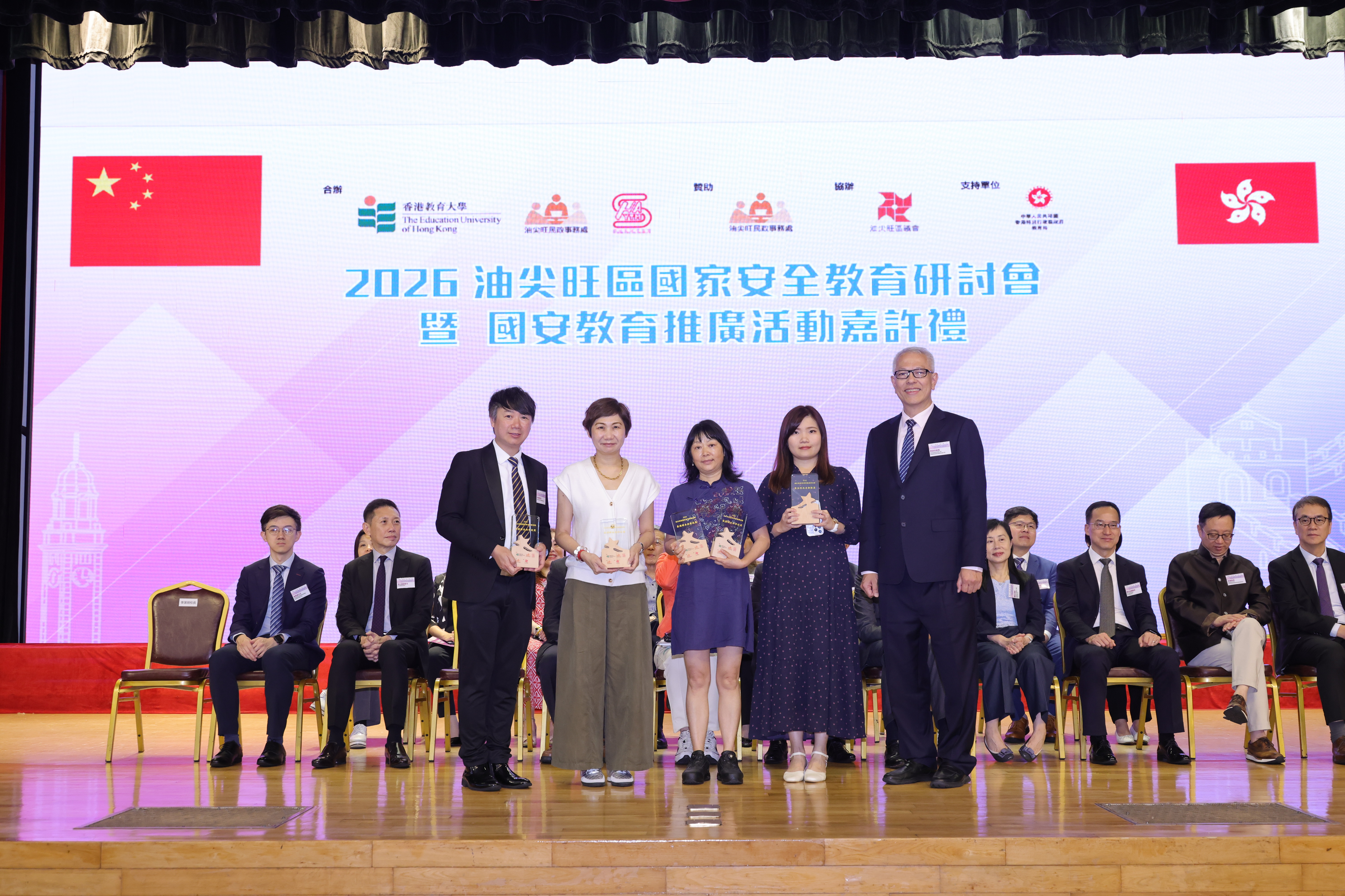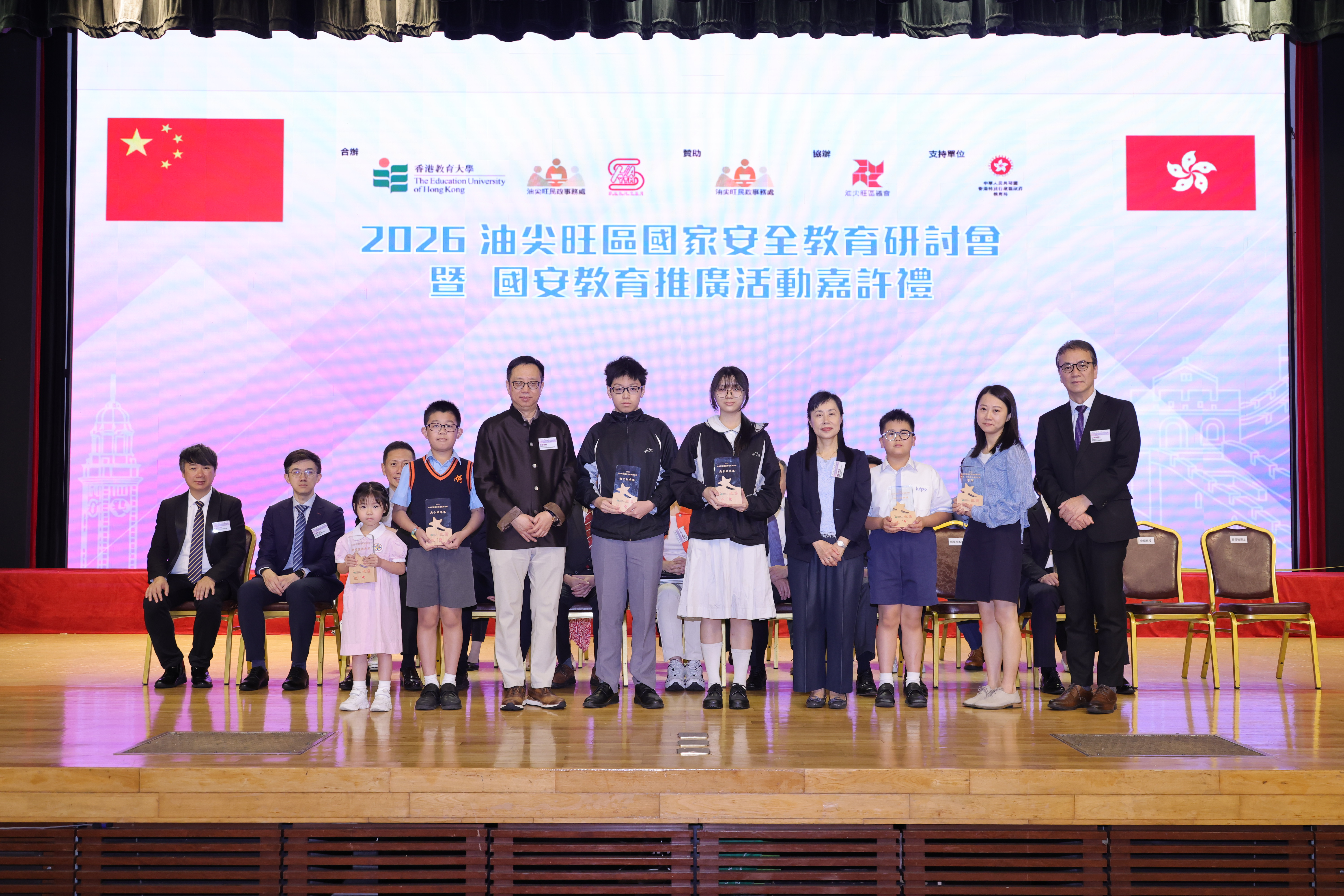 教大今日(4月11日)与油尖旺民政事务处及油尖旺区校长会,于尖沙咀会堂展开首个国安教育活动:「2026油尖旺区国家安全教育研讨会暨国安教育推广活动嘉许礼」,邀请师生、地区领袖及国安教育专家聚首,分享推动国安教育的经验和见解。活动吸引逾300名师生、家长及社区人士参与。