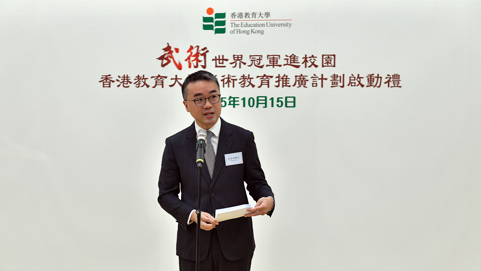 香港教育大學(教大)今日(10月15日)於大埔校園舉行「武術世界冠軍進校園:香港教育大學武術教育推廣計劃」啟動儀式,標誌一項為期兩年的武術教育推廣計劃正式展開,預計將有逾千名中小學生受惠。