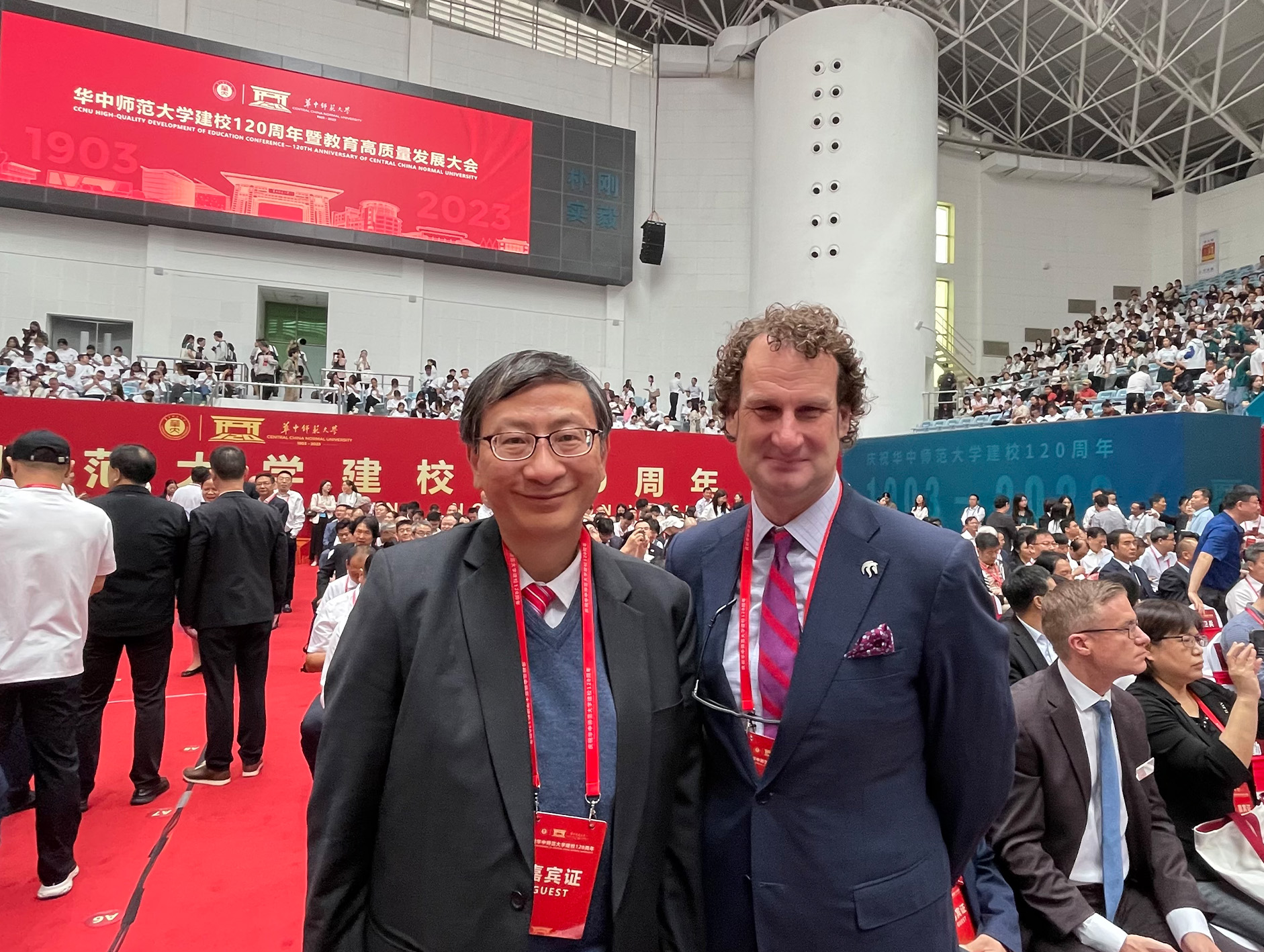 華中師大位於武漢,是教育部直屬重點綜合性師範大學,亦是國家教材建設重點研究基地、國家級國際聯合研究中心以及全國科普教育基地等。在訪問的第一日,李教授參加「華中師範大學建校一百二十周年暨教育高質量發展大會」開幕典禮,並於當日下午出席「2023中外大學校長論壇」並擔任主講嘉賓。